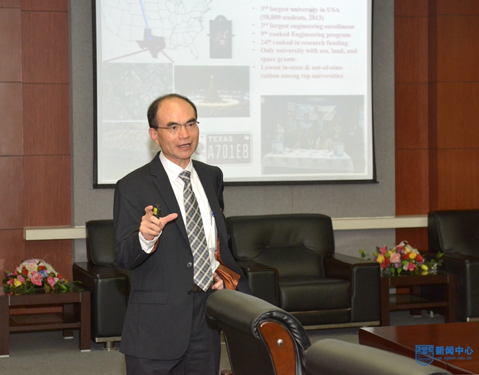 副校长巩建鸣教授对苏皇宇教授受聘客座教授表示欢迎和感谢。巩副校长盛赞苏皇宇教授无论在国内外学术界,还是在相关领域世界著名跨国公司都拥有很高的知名度与影响力;然后向苏皇宇教授简要介绍了我校的发展历程及“综合性、研究型、全球化”高水平大学的战略发展目标,特别是最近一年来成功入选国家“2011计划”等具有里程碑意义的重要进展。他进一步指出,在我校再获新材料、新能源领域优势学科支持的契机下,苏皇宇教授的加盟必将促进我校相关学科领域的交叉融合、创新研究,使我校先进材料研究院、能源学院等相关院系在人才培养、科学研究、人才队伍等方面的国际化水平得到快速提升。