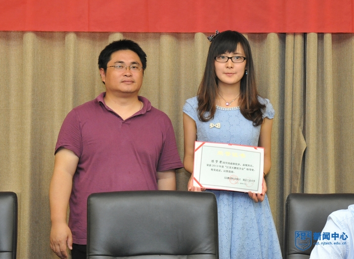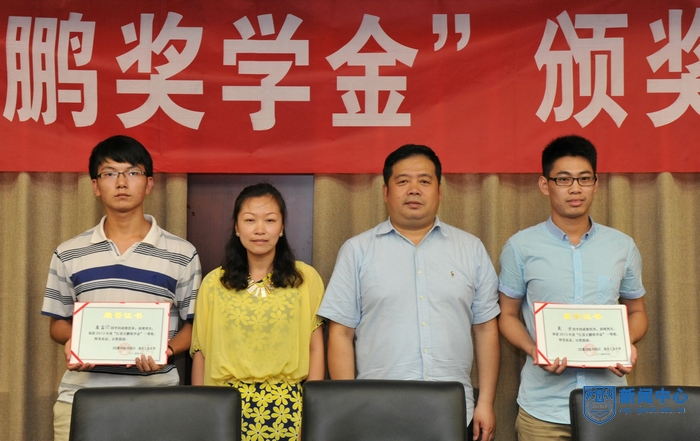 环境学院党委副书记于葳首先宣读了2013年度“江苏天鹏奖学金”获奖学生名单,与会嘉宾和领导共同为12位获奖学生颁发了荣誉证书。