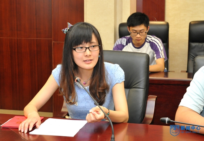 特等奖学金获得者,机械学院控制1103班陈梦君同学作为获奖代表作了发言。