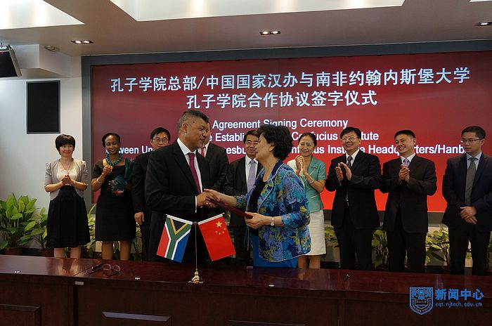 7月4日,孔子学院总部/中国国家汉办与南非约翰内斯堡大学孔子学院合作协议签字仪式在北京孔子学院总部隆重举行。中国国家汉办主任许琳女士和南非约翰内斯堡大学校长Ihron Rensburg教授出席并在合约上签字。校长黄维院士出席见证,并代表万博体育bet 与约翰内斯堡大学签定两校孔子学院执行协议。约翰内斯堡大学人文学院执行院长Lionel Posthumans教授、哲学首席教授Thaddeus Metz和国际部执行主任Pinkie Mekgwe博士列席会见和签字仪式。万博体育bet 副校长蒋军成教授、海外教育学院书记欧谨教授、海外教育学院院长陈苏教授、约翰内斯堡大学孔子学院中方院长吕建高教授等陪同会见并出席签字仪式。