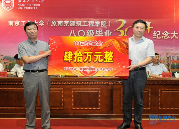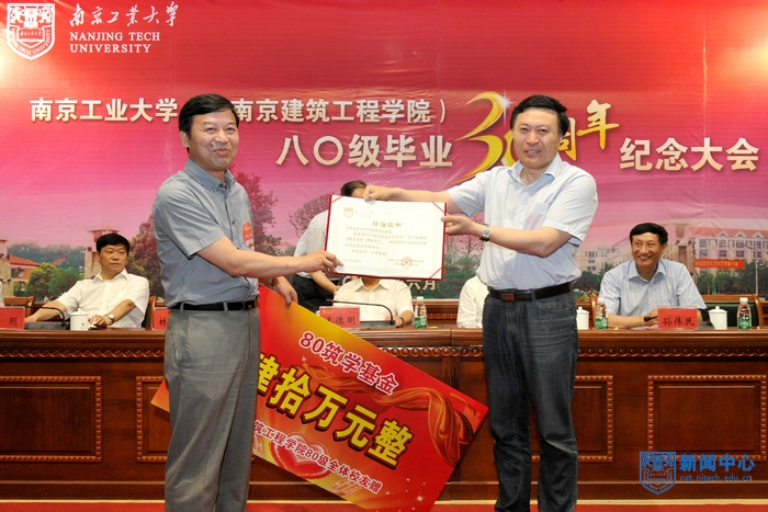 会上,由校友们捐资筹措的“80筑学基金” 正式设立,副校长乔旭代表学校接受捐赠并向校友代表颁发了捐赠证书。