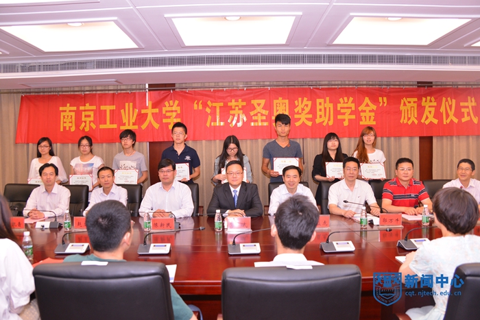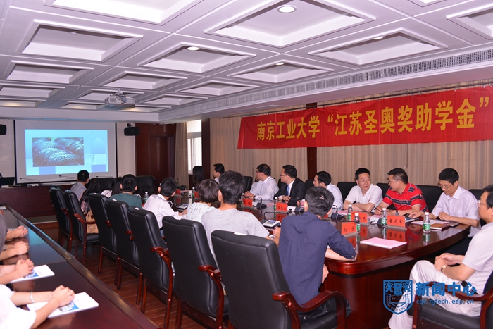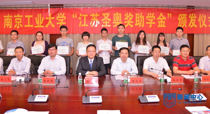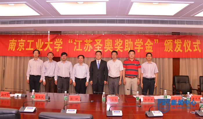 5月23日上午,2013年度“江苏圣奥奖助学金”颁发仪式在我校江浦校区行政楼104会议室隆重举行。江苏圣奥化学科技有限公司首席执行官苏赋先生,我校校友、公司研发副总裁陈新民先生等一行莅临我校,参加了颁发仪式。我校副校长崔益虎出席会议;校学生处、研究生院等部门负责人,部分学院党委副书记及全体获奖助学生参加了本次活动。仪式由学生处副处长潘运军主持。