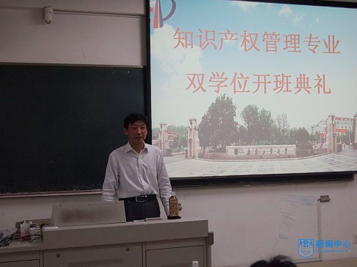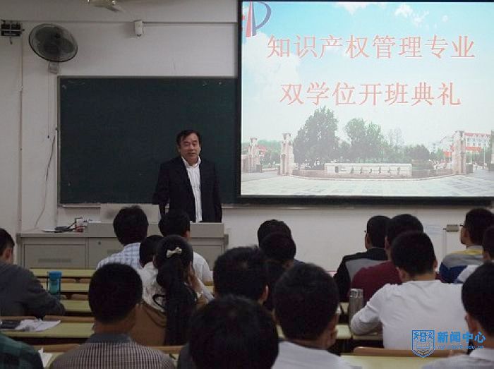 经济与管理学院院长赵顺龙教授主持仪式,并介绍了知识产权管理专业双学位课程设计的特色,为在座同学提出三个学习规划。