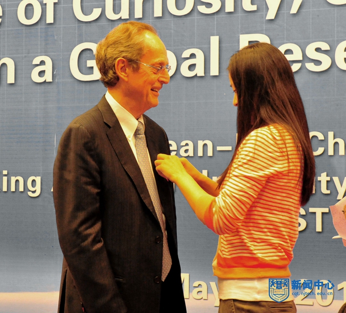 钱缪校长对于加盟南工、受聘名誉教授感到非常荣幸,并向与会的领导、师生朋友们致以诚挚谢意。他说,自己多次访问中国,但第一次来到南京,发现南京五月的梧桐与其家乡法国的梧桐一样美丽。南工人的热情和活力给他留下了深刻的印象。