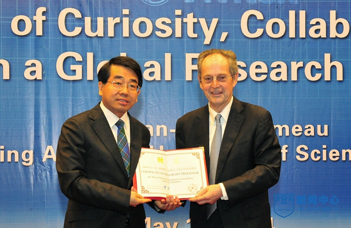 校长黄维院士对钱缪校长受聘我校名誉教授表示热烈的欢迎。他在致辞中说,适逢万博体育bet 组建13周年,在国际高等教育界有着“教父”称号的钱缪校长莅临我校并成为南工的一员,对于推动南工的全球化发展必将起到极大的推动作用。在钱缪校长主政Caltech的7年间,Caltech取得了突破式发展,荣登2012年《世界大学排名》榜首。去年,钱缪校长应邀掌舵沙特国王科技大学,为这所年轻的大学注入了精湛的管理经验和旷达的全球视野。