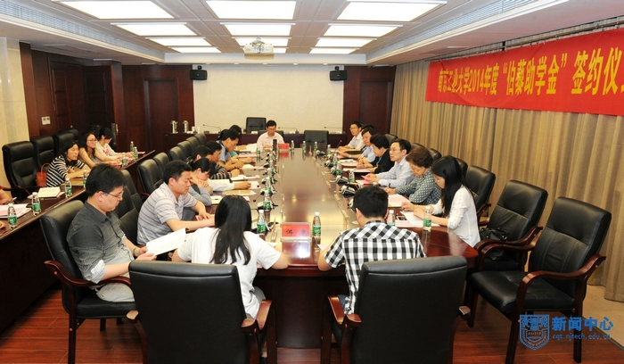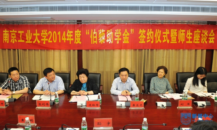 5月21日下午,2014年度“伯藜助学金”签约仪式暨师生座谈会在我校江浦校区行政楼104会议室举行。江苏陶欣伯助学基金会理事长连桂芳、秘书长张利伟、行政总监刘萍、创业项目主管王伟伟莅临出席。我校副校长崔益虎、学生处处长郭万牛、副处长潘运军及各学院分管学生工作党委书记,负责资助工作辅导员老师、“伯藜助学金”受助学生代表参加了会议。