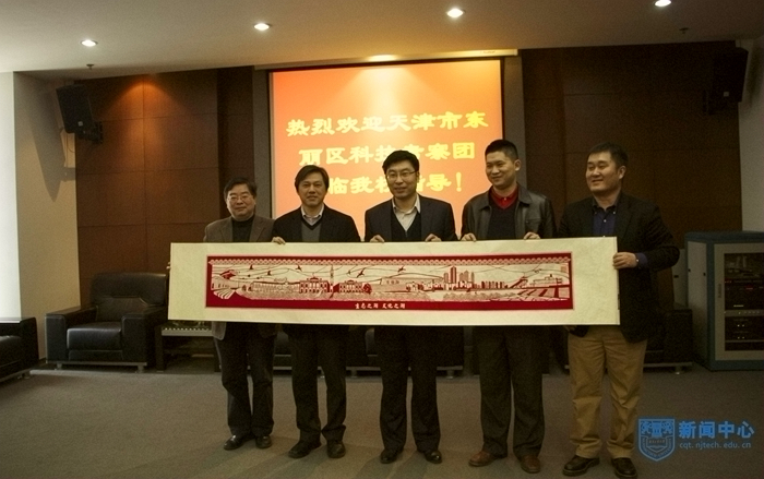 3月21日, 天津市东丽区科技考察团在区委常委、副区长白凤祥率领下,赴我校进行专题调研座谈。副校长巩建鸣教授及科研部相关人员出席会议。