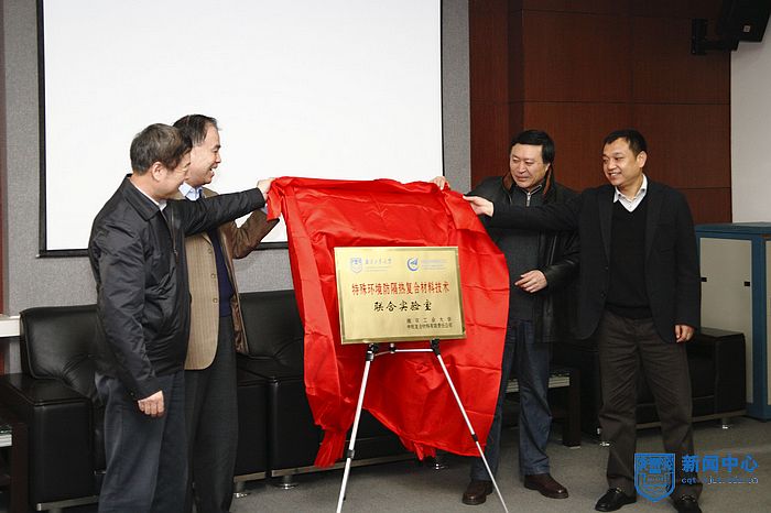 紧接着沈晓冬院长就联合实验室的筹建情况进行了简要阐述,并与吴世平董事长、陈祥宝院士、乔旭副校长共同为“特殊环境防隔热复合材料技术”联合实验室揭牌。