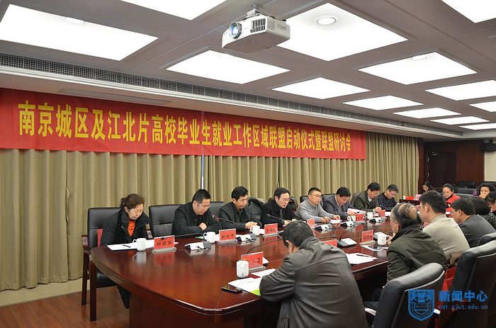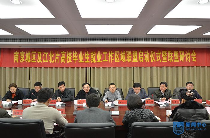 12月15日下午,南京城区及江北片高校毕业生就业工作区域联盟启动仪式暨联盟研讨会在我校江浦校区行政楼104会议室隆重举行。江苏省教育厅学生处副处长、省高校招生就业指导服务中心常务副主任鲁学军、南京市毕业生就业指导服务中心主任季顺祥、江苏省教育厅学生处宋伟、我校副校长崔益虎、学生处处长郭万牛、联盟成员高校分管毕业生就业工作的党政领导和相关部门负责人出席本次会议。会议由我校学生处处长郭万牛主持。
