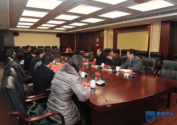 12月17日上午,华南理工大学党委副书记余其俊一行来我校专题调研师资队伍和协同创新中心建设,我校副校长巩建鸣及相关职能部门负责人在江浦校区行政楼104会议室接待了来宾。