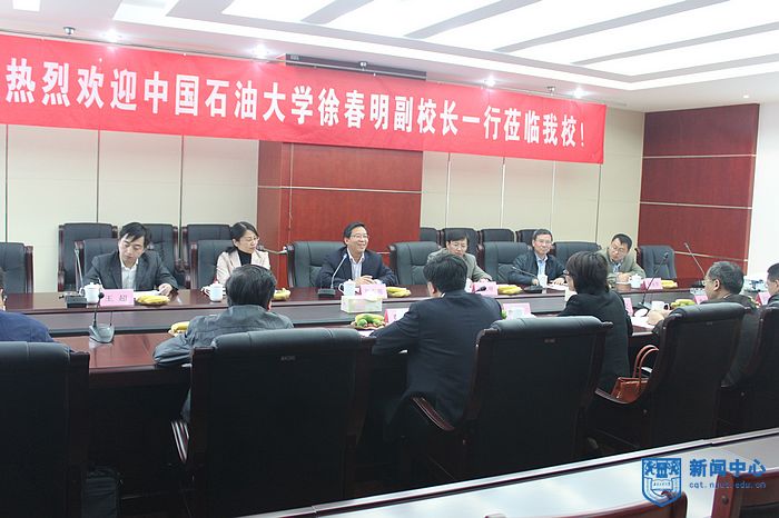 乔旭副校长从江苏先进生物与化学制造协同创新中心的定位选择,重大需求的凝练,方向选择,协同创新的必要性、迫切性,协同单位的选择,运行情况,体制机制改革,建设成效等八个方面全方位的介绍了江苏先进生物与化学制造协同创新中心建设认定历程。徐春明副校长在发言中指出两校校情相似,往来频繁,江苏先进生物与化学制造协同创新中心的建设经验对中国石油大学很有借鉴意义,希望今后能加强交流,深化合作。宾主双方畅所欲言,研讨热烈、充分、深入。会后邢卫红副校长陪同客人考察参观了膜科技产业园和江浦校区。(文:协同创新部;编辑:吴炎杰)