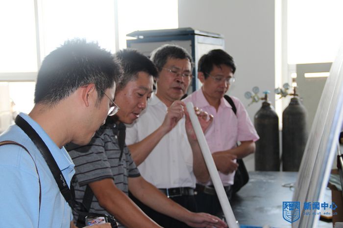 8月24日上午,福建师范大学汪文顶副校长一行10人来校专题调研我校协同创新与科技体制改革情况。副校长、协同创新部部长、江苏先进生物与化学制造协同创新中心主任乔旭教授及科学研究部常务副部长、自然科学处处长黄和教授,协同创新部协同创新办公室副主任秦卫明及中心部门骨干成员陪同调研。调研团一行实地参观了位于学校科技创新大楼内的南京科技广场科技公共服务大厅、材料化学工程国家重点实验室分析测试中心、膜材料与膜过程研究室及南京海纳医药科技有限公司等协同创新中心的科技公共服务平台、技术研发支撑平台及学科型公司。