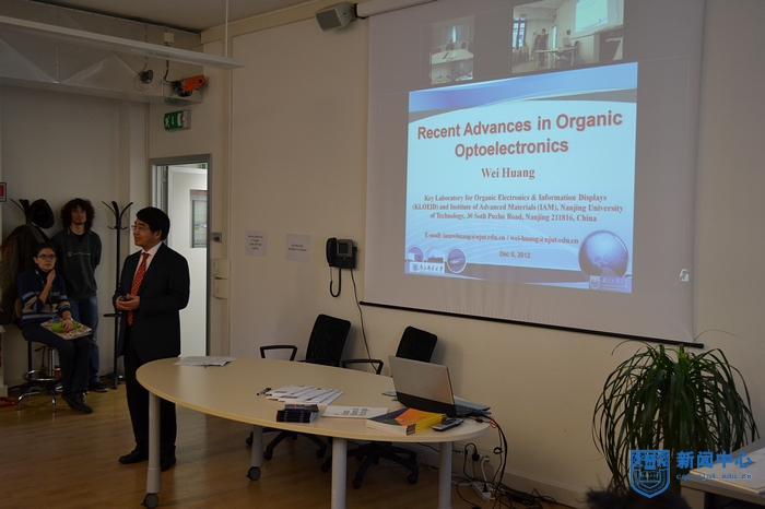 在Prof. Guglielmo Lanzani的陪同下,黄维院士先后参观了中心各个实验室,米兰理工大学莱昂纳多校区及物理系,各实验室人员向黄维院士做了详细工作及成果介绍。访问期间,黄维院士做了题为《Recent Advances in Organic Opoelectronics》的学术报告。报告重点介绍了我方在有机半导体领域的研究进展,特别是在光伏器件,有机显示及有机记忆方面的应用。都灵、热那亚等地研究机构的学者通过视频参加了本次报告会,报告的精彩内容得到了与会者的高度赞赏。