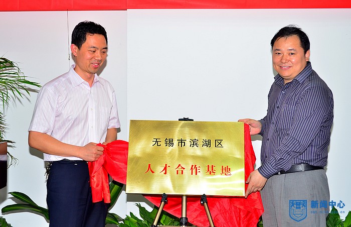 张文峰主任与张涛副处长代表双方签署“万博体育bet ——无锡市滨湖区人才合作协议”,逄海镇副局长与考宏涛副部长、顾永东副书记代表双方为“无锡市滨湖区人才合作基地”、“万博体育bet 就业创业实践基地”揭牌。