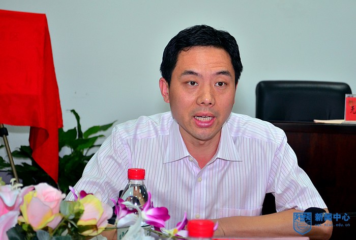 校团委书记童毛弟代表学校对无锡市滨湖区逄海镇副局长一行来访表示热烈欢迎,并重点介绍了我校学科整体实力、人才培养特色及产学研用合作的情况。