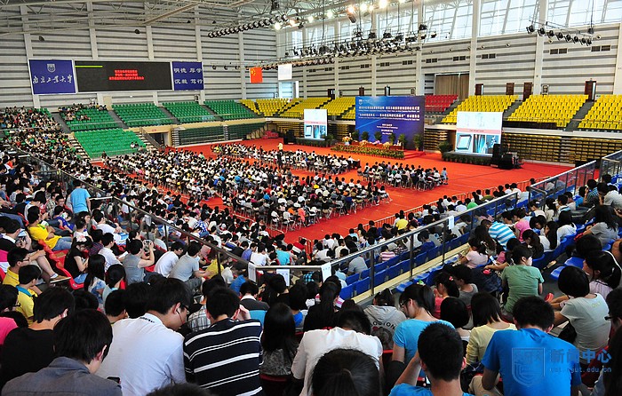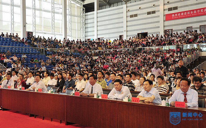 胡贝尔教授介绍了蛋白质结构和功能的关系,从物理、化学、生物及医学的角度讲述了蛋白质科学研发以后的社会效益,并用具体的例子深刻剖析了蛋白质工程与人类生活的密切联系。他同时从基础科学、应用科学到人类临床实践的角度,阐述了如何将蛋白质科学理论发展到产业化的过程。体育馆内坐满了前来目睹大师风采的师生们。胡贝尔教授全程英文演讲,师生们听得聚精会神,特别是研究生们更是抓住了难得的机会,与大师进行面对面交流。