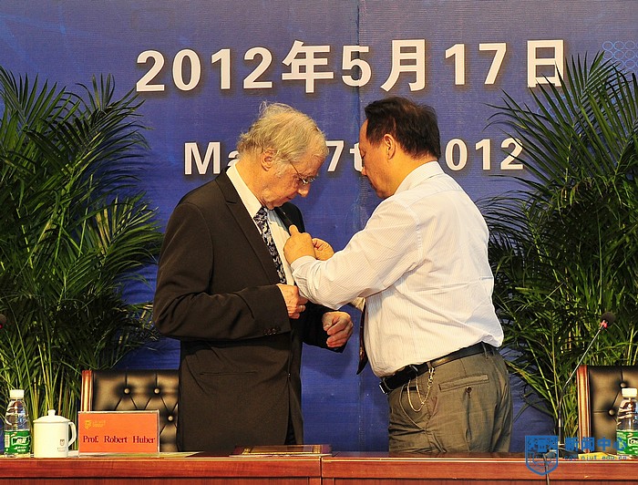 罗伯特•胡贝尔教授1937年出生于德国,1963年获德国慕尼黑科技大学博士学位,曾任德国马普学会生物化学研究所生化研究院负责人、英国皇家学会外籍会员、美国科学院外籍院士、第三世界科学院特邀院士、德国化学科学院院士、生物化学科学院院士,主要从事结构生物学研究工作。多年来,罗伯特•胡贝尔教授几乎包揽了生命科学和医学领域的各种大奖,并因为在“细菌的光合作用中心之蛋白质复合体的三维空间结构”方面所取得的开创性成果而荣获1988年诺贝尔化学奖。