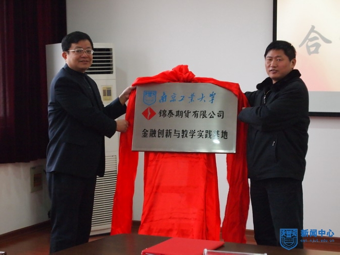我校教务处处长管国锋教授与锦泰期货有限公司总裁夏穗宁先生共同揭牌。