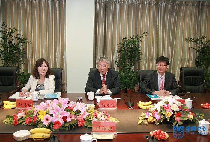 会见时,刘伟庆副校长首先代表学校向代表团来访表示热烈欢迎,并简要介绍了学校的基本情况和发展态势,特别强调了学校近几年在学科建设、科学研究和产学研结合等方面取得的成绩。谈到两校之间的合作时,刘副校长指出,国际化已经列入高水平大学建设的主要指标,国际化包括:教学科研人员国际背景、国际合作科研、国际学术会议、国际合作办学、招收留学生等等。两校专业设置非常相似,都非常重视科学研究和产学研结合,并且都做出了突出的成绩,因此,两校存在非常多的合作可能,比如:在绿色能源领域开展合作科研、推荐土木、建筑专业的研究生来我校交流学习,做毕业设计等等。自2006年两校签订友好合作协议以来,双边已经在一些专业开展了互派研究生等合作模式的尝试,刘副校长希望通过此次校长代表团的来访,进一步拓展两校间的合作和交流。对此,韩国金乌国立工科大学校长禹亨植先生表示完全赞同。