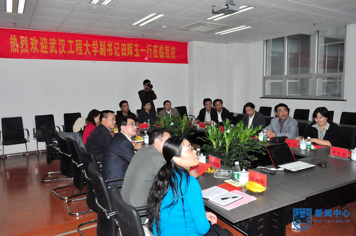 10月18日下午,武汉工程大学党委副书记田辉玉一行6人来我校调研交流。我校党委副书记王雪峰及相关职能部门负责人在科技创新大楼热情接待了来宾。