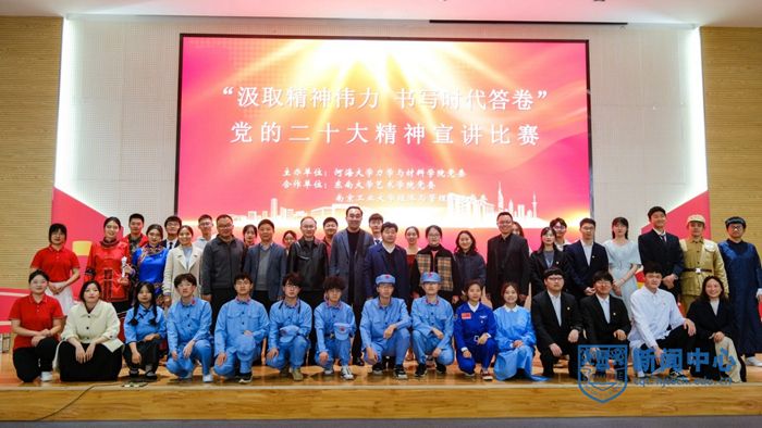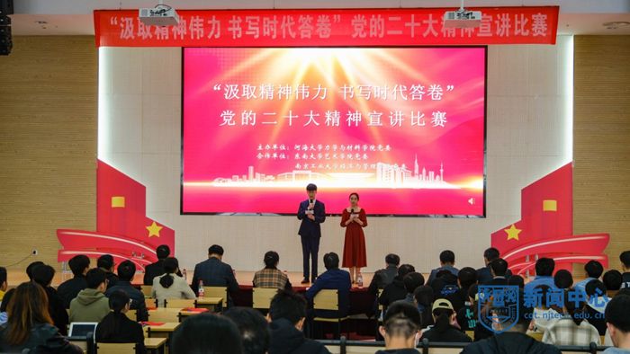 3月31日下午,我校经济与管理学院党委、河海大学力学与材料学院党委、东南大学艺术学院党委联合举办的“三校学子共奋进 青春践行二十大”主题教育系列活动之“汲取精神伟力 书写时代答卷”党的二十大精神宣讲比赛,在河海大学江宁校区乐学楼报告厅举行。河海大学力学与材料学院党委书记杨春伟、副书记李晓东,东南大学艺术学院党委副书记袁琴,我校经济与管理学院党委副书记岳克勤等参加活动。