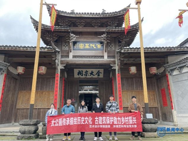 艺术设计学院师生开展“太公画传承描绘历史文化 古建筑保护助力乡村振兴”活动。走访古建大师张福良,就500年明朝古建项目现场教学,张师傅希望青年人掌握并传承古建建造技术。邀请太公画非遗传人童谷华绘作国画,讲解非物质文化遗产“太公画”来源历史、绘作过程、深远意义等。考察长乐古村建筑群,就古建防护、烧毁古建筑修复问题重点讨论。