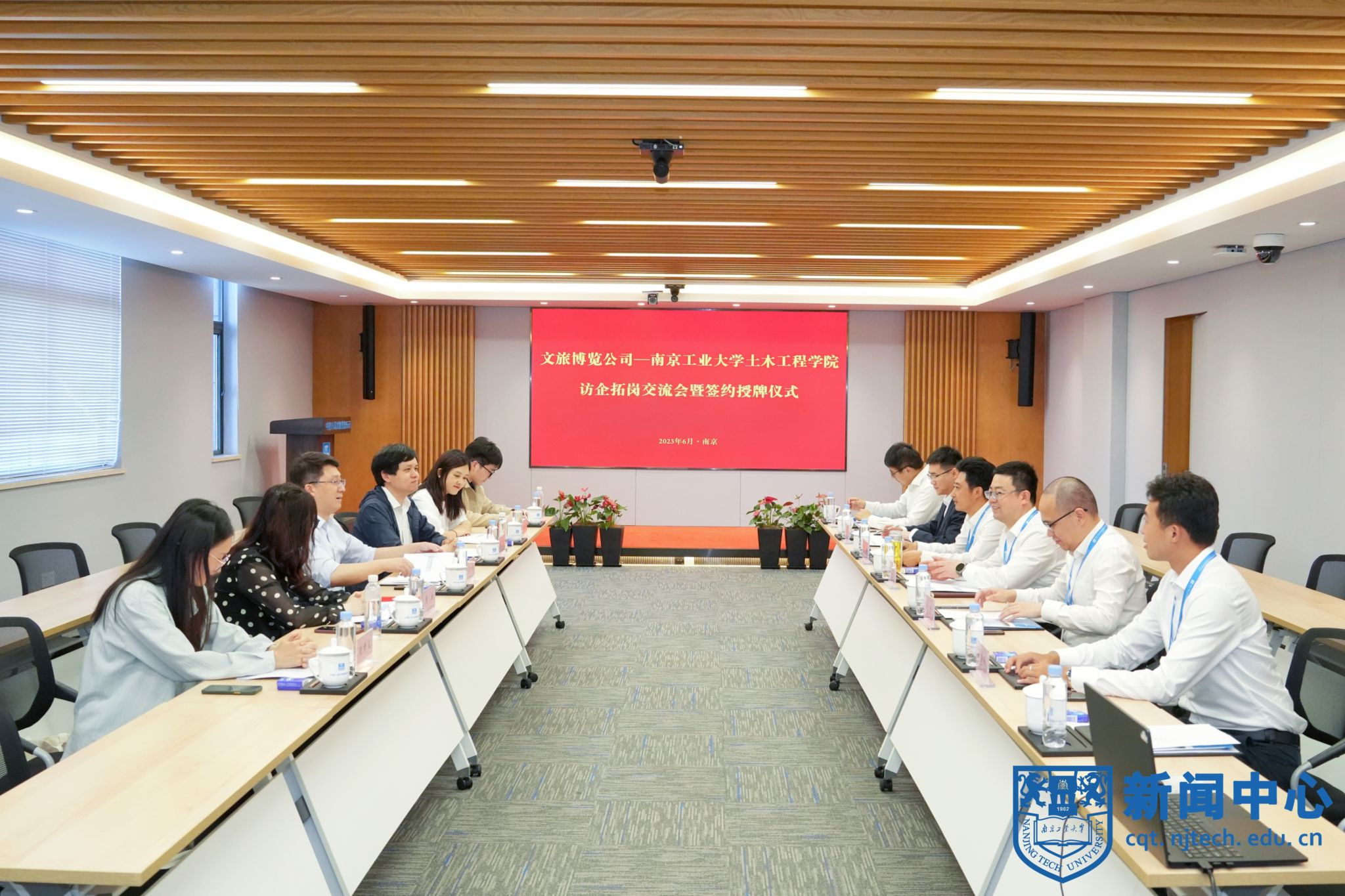 张忠阳书记在致辞中对方海院长一行表示热烈欢迎,并指出要贯彻落实党的二十大报告中“以文塑旅,以旅彰文”精神,希望双方在协同发挥党组织政治优势、协同健全联建工作机制、协同探索人才双向培养模式等三个方面加强合作,推动文旅事业再上新台阶。双方共同观看了企业宣传片,听取了孙玮经理对企业的全面介绍。方海院长对文旅公司长期以来对学院发展的关心支持表示感谢,并充分肯定了文旅公司在项目开发、传承创新等方面取得的突出成绩。方院长从建筑业转型与双碳结构、绿色材料与低碳结构、智慧建造与智慧运维、城市韧性与防灾安全、学院基本情况等五个方面做了详细介绍,他期待双方进一步加强科产教融合,在人才培养、科学研究、社会服务等方面全面合作,实现共赢。随后,双方就校企合作具体事宜进行深入交流,并进行“就业创业实习实践基地”和“职业生涯教育校外实践基地”签约暨授牌仪式。