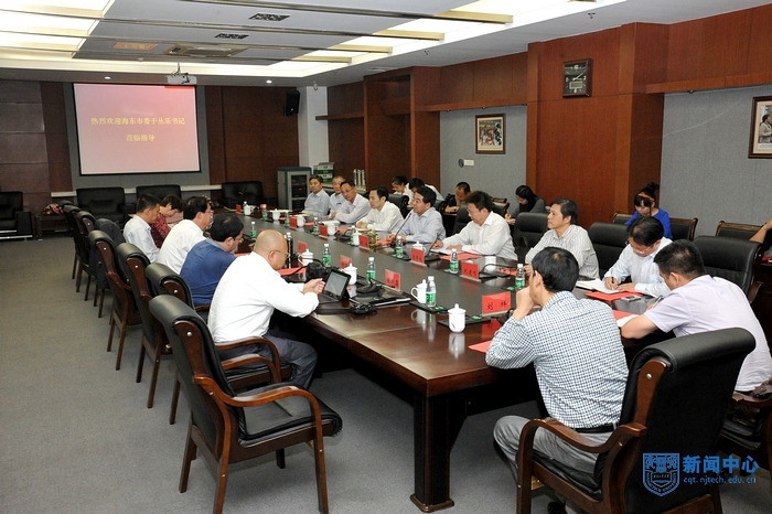 校长黄维院士首先代表学校致辞,他对于书记一行来访表示热烈的欢迎,对海东的持续快速发展给予了高度评价。黄校长系统介绍了百年南工的发展脉络和近期取得的成绩。他指出,在办学112年的过程中,学校始终坚持以人才培养为根本,牢固树立科学的育人理念,向社会输送了近20万优秀人才;坚持面向国民经济和社会发展需要,开展科学研究和社会服务工作,形成了一系列重大创新成果并产生了良好的经济与社会效益;坚持引领先进文化,构筑大学精神高地,为实现建成“综合性、研究型、全球化”高水平大学的“南工梦”提供了不竭的人文滋养。近两年来,学校抢抓机遇,自加压力,改革创新,成为国家首批入选“高等学校创新能力提升计划(2011计划)”的14所高校之一,成功跻身国内主流高校行列。黄校长表示,作为率先发展起来的高校,充分发挥自身特长和比较优势,帮助亟待发展的西部地区和有关学校,是南工义不容辞的责任。海东作为西部重要的交通枢纽,区位优势显著,矿产资源丰富,具有良好的创新创业环境。加强与海东的合作,不仅是助力南工长远发展的重要战略布局,也是校市协同创新的新模式和新举措。在前期的共同努力下,双方已就全面深化合作达成了共识。未来,南工希望本着“模式创新、优势互补、资源共享、合作共赢”的原则,努力促使双方在教学载体建设、创新人才培养、科技成果转化和管理人员交流等方面不断取得新的突破,为推动我国高等教育的改革发展、创新发展、协同发展做出新贡献。