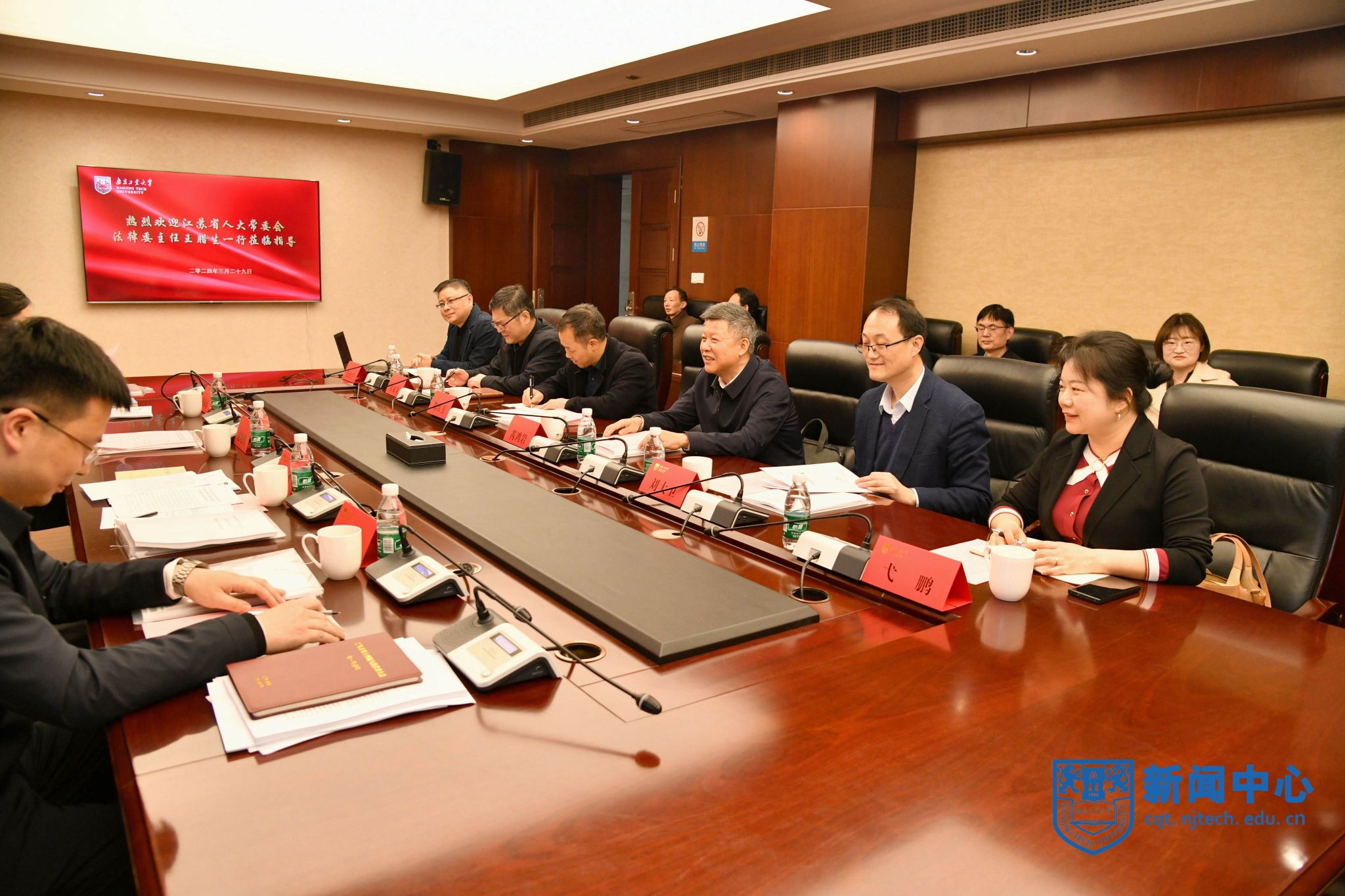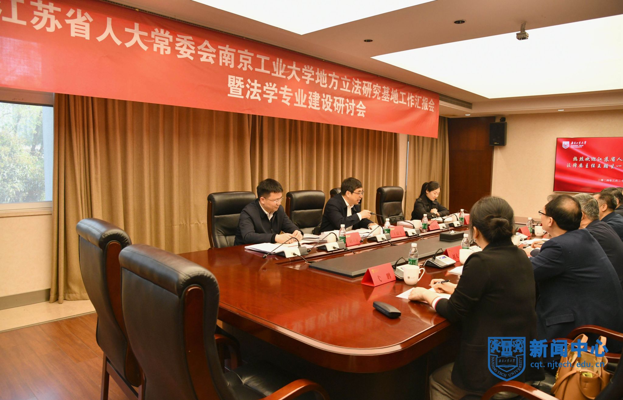 3月29日下午,我校江苏省地方立法研究基地工作汇报暨法学专业建设研讨会在行政楼117会议室举行。省人大法制委分党组副书记、省法学会副会长、我校兼职教授王腊生,校党委书记、基地主任芮鸿岩出席会议。会议由副校长刘大卫主持。