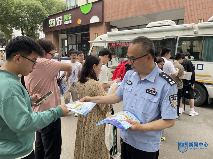 为更好地服务师生员工,5月21日,保卫处邀请江北新区分局政务服务管理大队在江浦校区东苑食堂外开展公安政务流动服务暨反诈宣传活动。