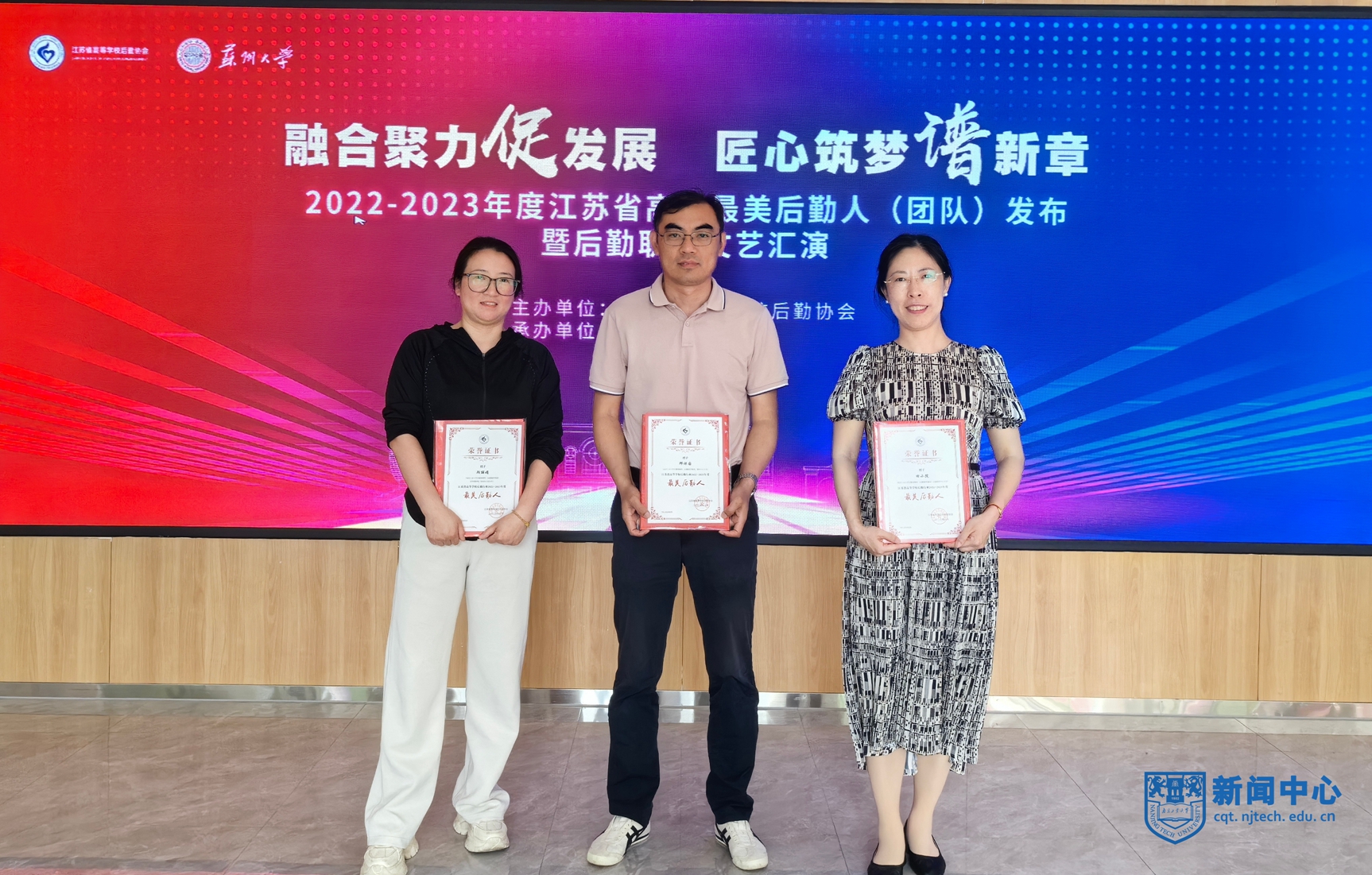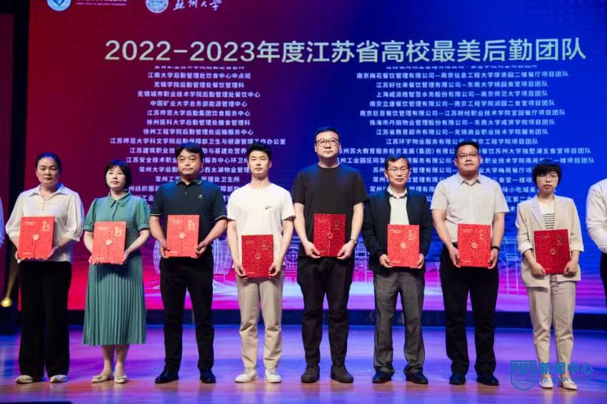 活动中,我校后勤保障处被正式授牌为“江苏省高校后勤学生劳动教育基地”,这标志着我校后勤工作不仅在服务保障上精益求精,更在培养学生劳动观念和实践能力方面承担了重要责任。同时,后勤餐饮服务中心荣获“2022-2023年度江苏省高校最美后勤团队”称号;顾丽娟、邱祥国、田小院三位同志被授予“2022-2023年度江苏省高校最美后勤人”称号。
