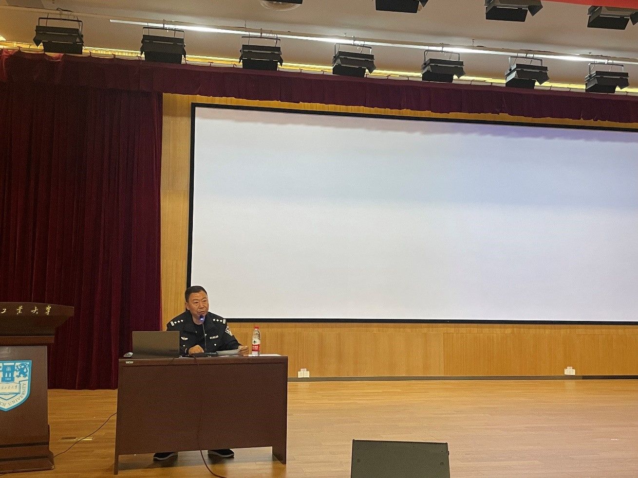 吴警官围绕人身安全、交通安全、应急安全、网络安全等多个方面展开安全教育第一课。人身安全方面,吴警官以宿舍安全为主要落脚点,要求学生严格遵守宿舍相关规定,不晚归或夜不归宿。鼓励学生积极参加安全知识竞赛,让广大学生深入了解和掌握安全知识,提高自我保护能力。交通安全方面,需严格遵守交通规定,走路不看手机,校内走人行横道等。同时,吴警官提醒学生们应急安全不容忽视,尤其对待火灾要做到“三懂三会”,懂火灾的危害性、懂火灾的预防措施、懂基本消防常识;会报警、会扑灭初期火灾、会组织疏散。加强网络安全教育是此次讲座的重中之重,引导学生正确使用网络,下载国家反炸APP,预防网络沉迷和网络诈骗迫在眉睫。最后吴警官还提醒学生在保护自己人身安全的同时也要注重自己的财产安全,提高财产安全意识,防止财物被盗抢。同时,还对学生进行了法制教育,让学生了解法律法规,树立法治意识,自觉抵制违法犯罪行为。