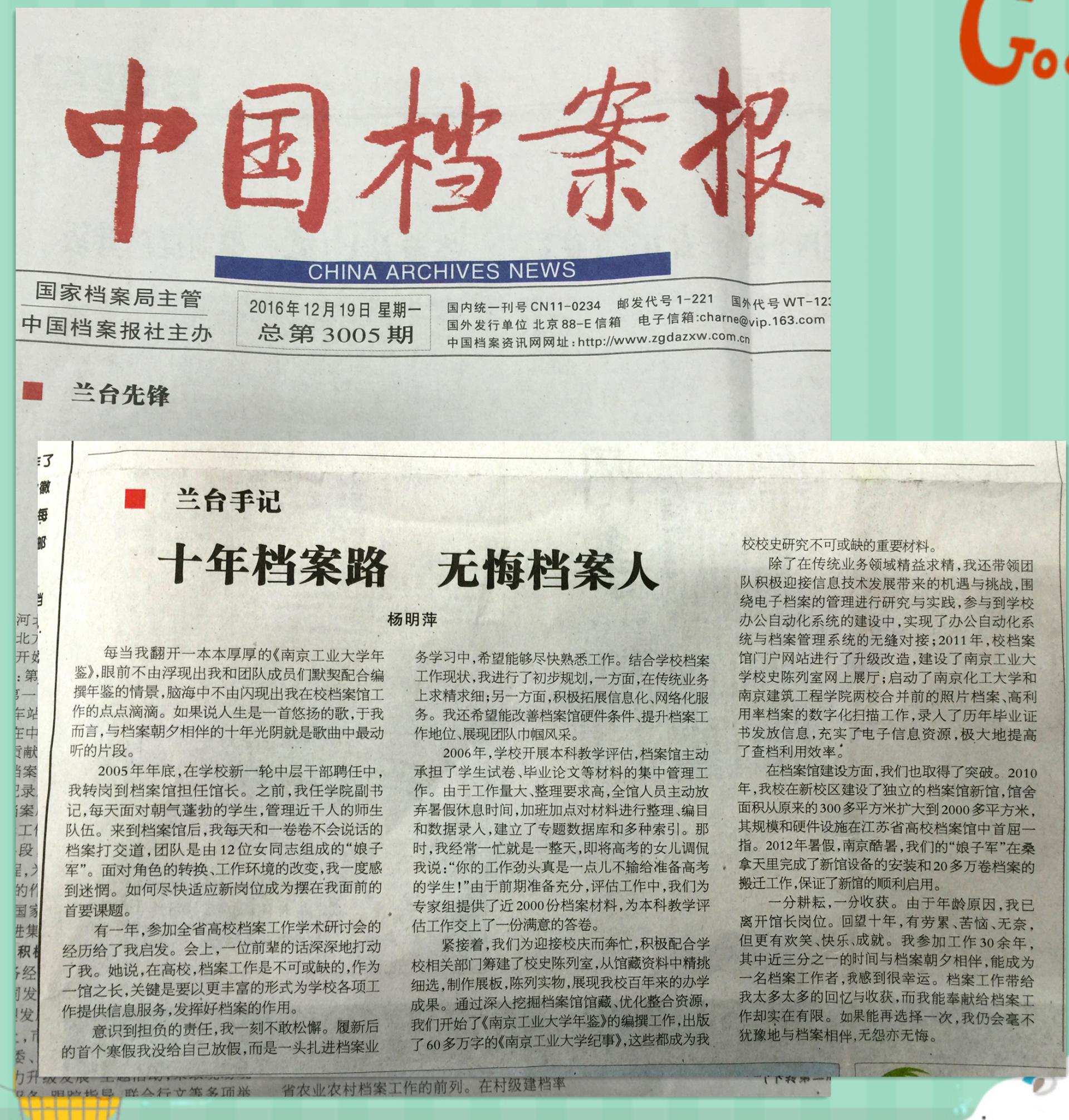 我馆杨明萍同志的文章在《中国档案报》上刊登