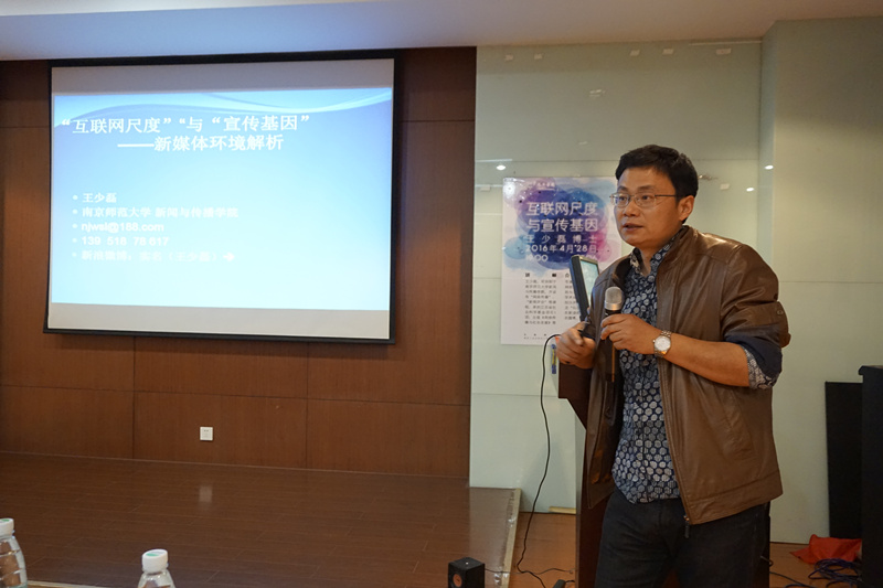 讲座伊始,王博士就“宣传”“基因”、“互联网尺度”等关键概念进行了学术解读,并引用现代网络传播中的生动案例进行深入分析。随着数字技术、通讯技术等不断发展,新闻宣传工作受到的挑战越来越大,媒介融合要求越来越高。在受众信息需求和信息获取途径已发生改变的今天,新闻宣传叙述也要做出相应的跟进、调整和适应。随后,王老师围绕互联网时代独具的特点,指出新闻宣传工作者适应互联网带来的新的传播语境和话语方式,并学习互联网传播所具有的即时互动、无远弗届、实时传播等特点,同时也分析了在互联网时代新闻宣传工作者可以开拓的业务空间。讲座期间,王老师列出了许多生动的图片和网络视频供现场老师和同学们学习思考,让人印象深刻。