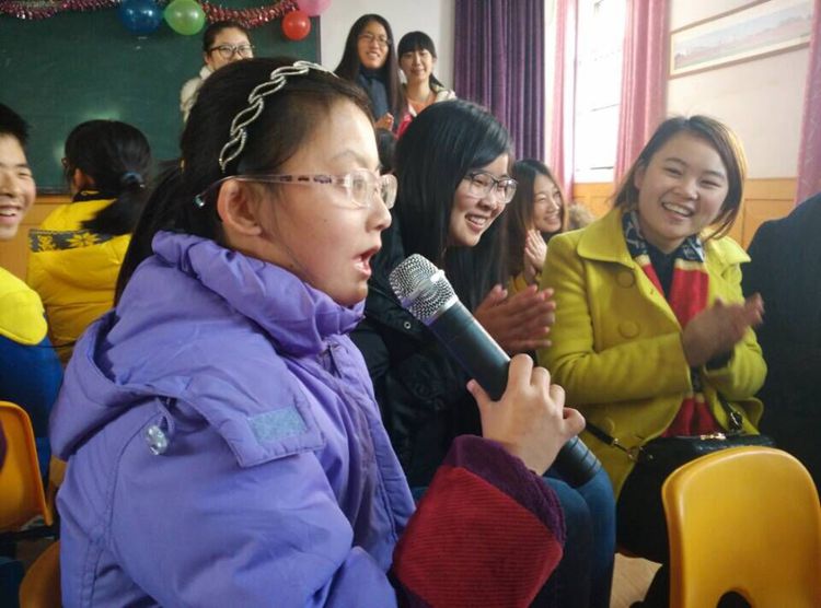 12月15日下午,生工志愿者一行30多人来到南京市鼓楼区特殊教育学校,开展了以“献爱心,助成长”为主题的志愿服务活动。本次活动设计了手工游戏,绘画表演,歌唱比赛与才艺表演等4项环节,志愿者为这些特殊的孩子们带去了爱心食品与益智玩具,与他们共同游戏,在冬日里共享阳光,感受温暖。