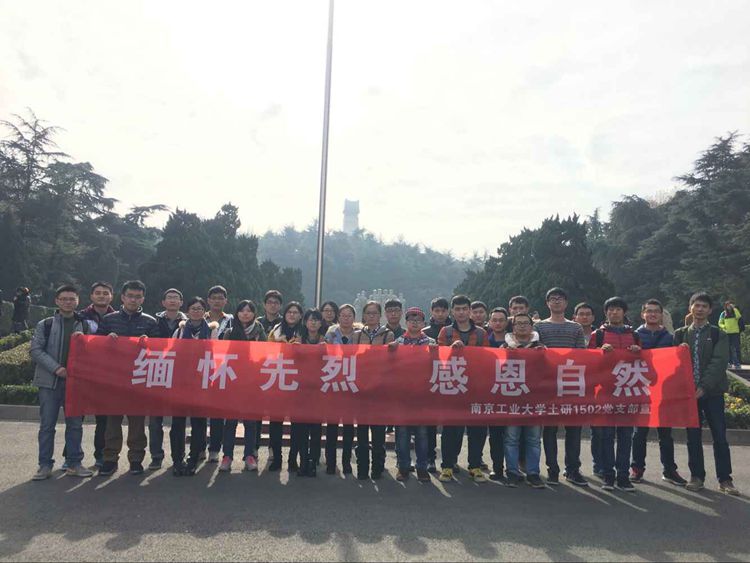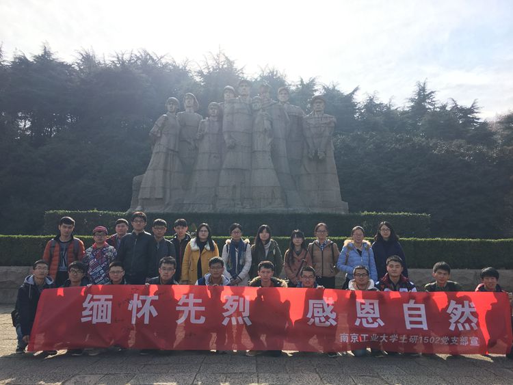 2015年11月28日,土木工程学院研究生第十党支部党全体学生党员及积极分子,赴雨花台烈士陵园开展了以“缅怀先烈,感恩自然”为主题的党日活动,祭奠雨花台抗日英雄,呼吁人们铭记历史,勿忘国耻,珍惜现在的美好生活,同时保护环境,感恩自然。