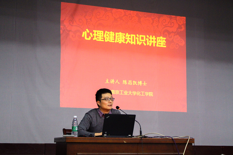 为使广大研究生拥有积极力量,保持身心健康,11月20日下午,由化工学院主办、化工学院研究生会承办的“情绪管理与人际交往”心理健康知识讲座在丁家桥校区大礼堂成功举行。南京大学心理学系副教授陈昌凯博士应邀主讲,化工学院党委书记彭光成、研究生辅导员葛凯以及全院研究生同学听取了讲座。
