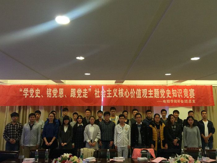 为纪念中国人民抗日战争暨世界反法西斯战争胜利70周年,更好地践行社会主义核心价值观,引导大学生加强爱国主义教育及思想道德建设,使大学生对肩负的历史使命和责任有更深刻的认识,电气工程与控制科学学院研究生团总支于11月14日下午在机电学科楼D楼416会议室开展了“学党史、铭党恩、跟党走”——践行社会主义核心价值观党史知识竞赛决赛,本次活动面向电气工程与控制科学学院本科生和研究生,吸引了大量学生参赛。