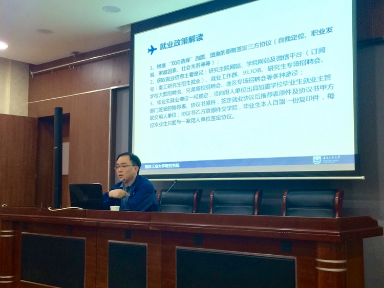 11月18日下午,生物与制药工程学院、食品与轻工学院、药学院2017届研究生就业指导讲座在生工学科楼一楼报告厅成功举办。此次讲座由生工学院研究生辅导员潘志颖老师主持,生工学院党委书记姜岷教授、研究生院就业办公室蔡亚峰老师出席了本次讲座,全体2017届应届研究生毕业生聆听了本次讲座。