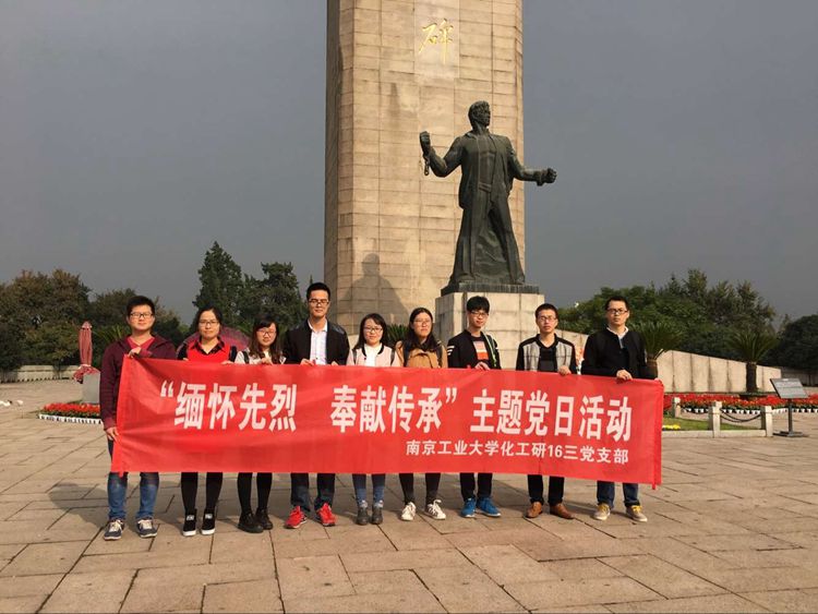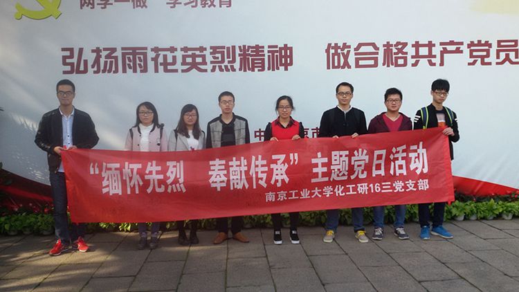 为在2016级研究生新生党支部中深入开展“两学一做”学习教育,11月13日,化工研16三党支部组织了“缅怀先烈、奉献传承”纪念先烈的主题党日活动。敬献鲜花、参观雨花台烈士纪念馆、分享家乡忠烈事迹、诵读革命家书等活动顺利开展。