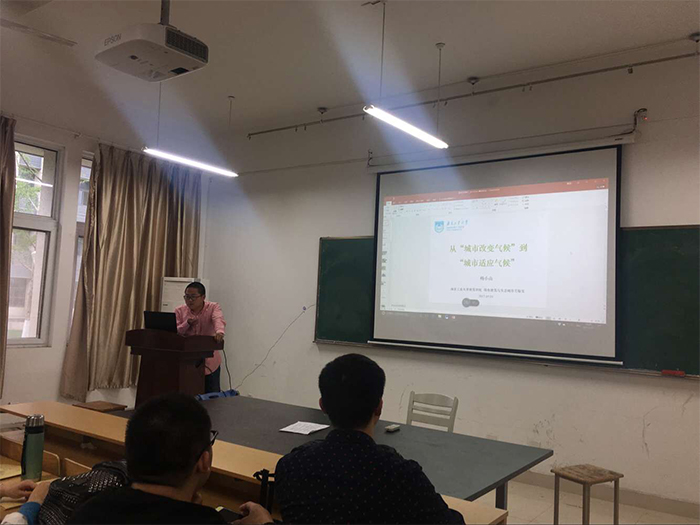 会议主要分为三大部分,首先由杨小山老师给大家分享了他的研究课题——从“城市改变气候”到“城市适应气候”,杨老师结合绿色建筑的相关知识,向同学们讲解了他的研究过程和研究成果,让同学们对于城市和气候的关系的了解更进了一步。