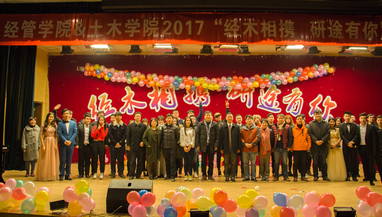 送走了硕果累累的2016,悄悄地迎来了充满希望的2017。回顾过去,激情与奋斗,成功或失败都随着时间的流逝成为了历史,而每个人也都在总结自己的2016并展望美好的2017。2016年12月29日晚,我们迎来了土木学院、经管学院迎新年联谊晚会。党委研究生工作部副部长顾永东,土木学院院长肖岩,经济与管理学院党委书记杨琦,土木工程学院党委副书记熊中宏,土木工程学院副院长汪霄,经济与管理学院副院长陈同扬,两院研究生导师代表、系主任、学办老师、校研究生会和各兄弟学院研究生会主席与两院500多名研究生齐聚一堂,共迎新年。