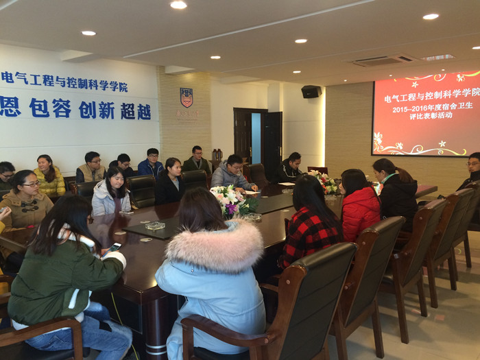 为创建整洁文明的学习生活环境,营造积极向上、安全和谐的宿舍文化氛围,推动学院的精神文明建设,电气工程与控制科学学院研究生会于12月14日下午举办了2015-2016学年“文明宿舍”评比表彰活动。学院研究生辅导员王巧云、研究生会成员、获奖宿舍成员参加了本次活动。