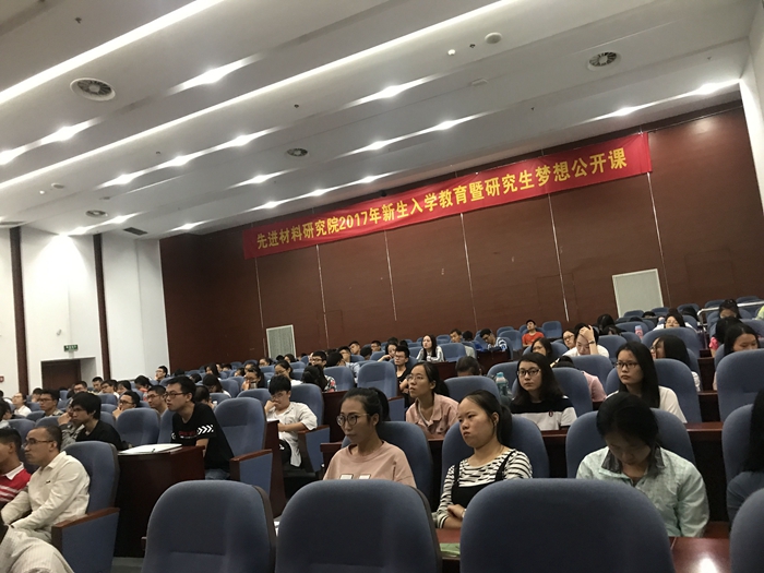 9月7日上午,海外人才缓冲基地(先进材料研究院)2017级新生梦想公开课在科技创新大楼五楼报告厅举行。先进材料研究院副院长李林以《青春·梦想·奋斗》为题,为新生讲授公开课。