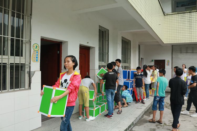 该校合唱团成员积极的将捐赠物品搬至音乐室与合唱室,摆放整齐之后,迫不及待的使用起了六面体音乐板凳。不时能听到孩子们爽朗的笑声,伴随着“以后再也不用蹲着学音乐啦”这样的话语。