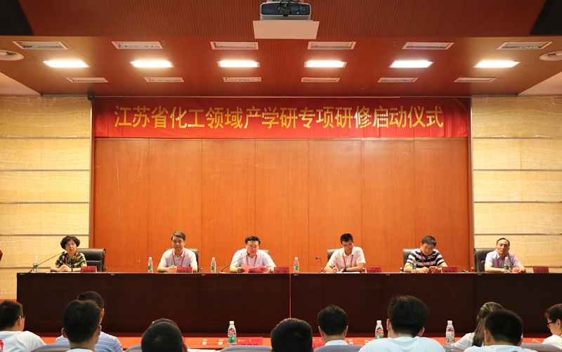 6月3日,江苏省化工领域研究生产学研专项研修暨致远企业行启动仪式在科技创新大楼五楼报告厅举办。副校长乔旭、省化学化工学会副秘书长马建平、院党委书记彭光成、校党委研究生工作部副部长顾永东、国家重点实验室常务副主任金万勤、兄弟院校化工领域研究生及我院研究生代表参加,省化学化工学会理事、我院教授刘晓勤主持启动仪式。