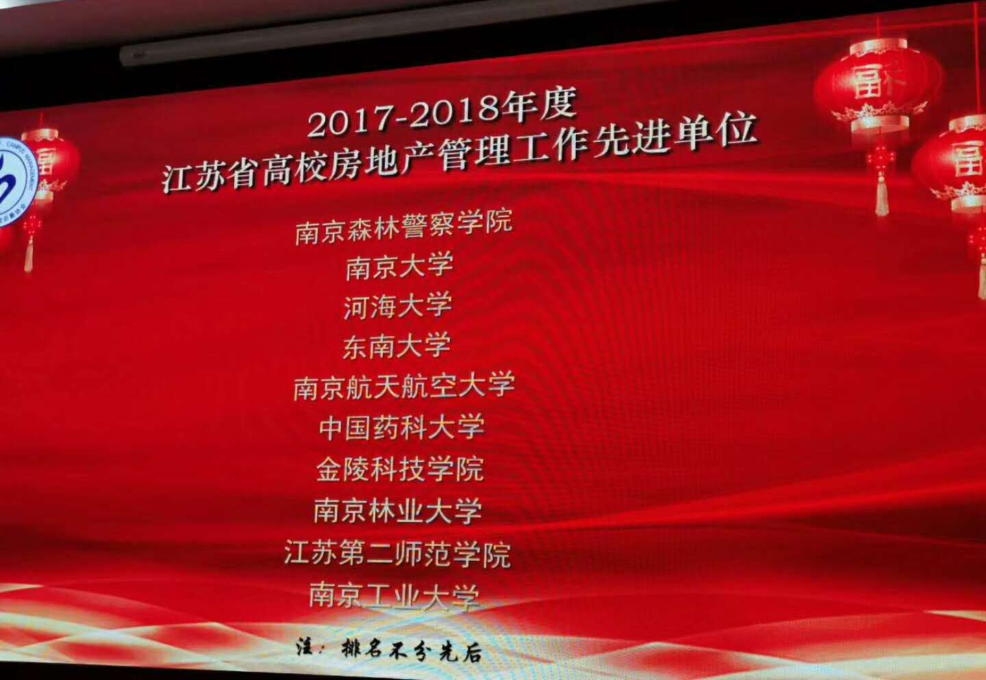 大会表彰了2017-2018年度江苏省高校房地产管理工作“先进单位”、“先进个人”、“十佳个人”。我校喜获房地产管理工作“先进单位”荣誉称号,周静珍老师荣获“十佳个人”荣誉称号。国有资产管理处将继续坚持务实的工作作风,认真开展工作研讨,大力推进我校房地产管理工作再上新台阶。