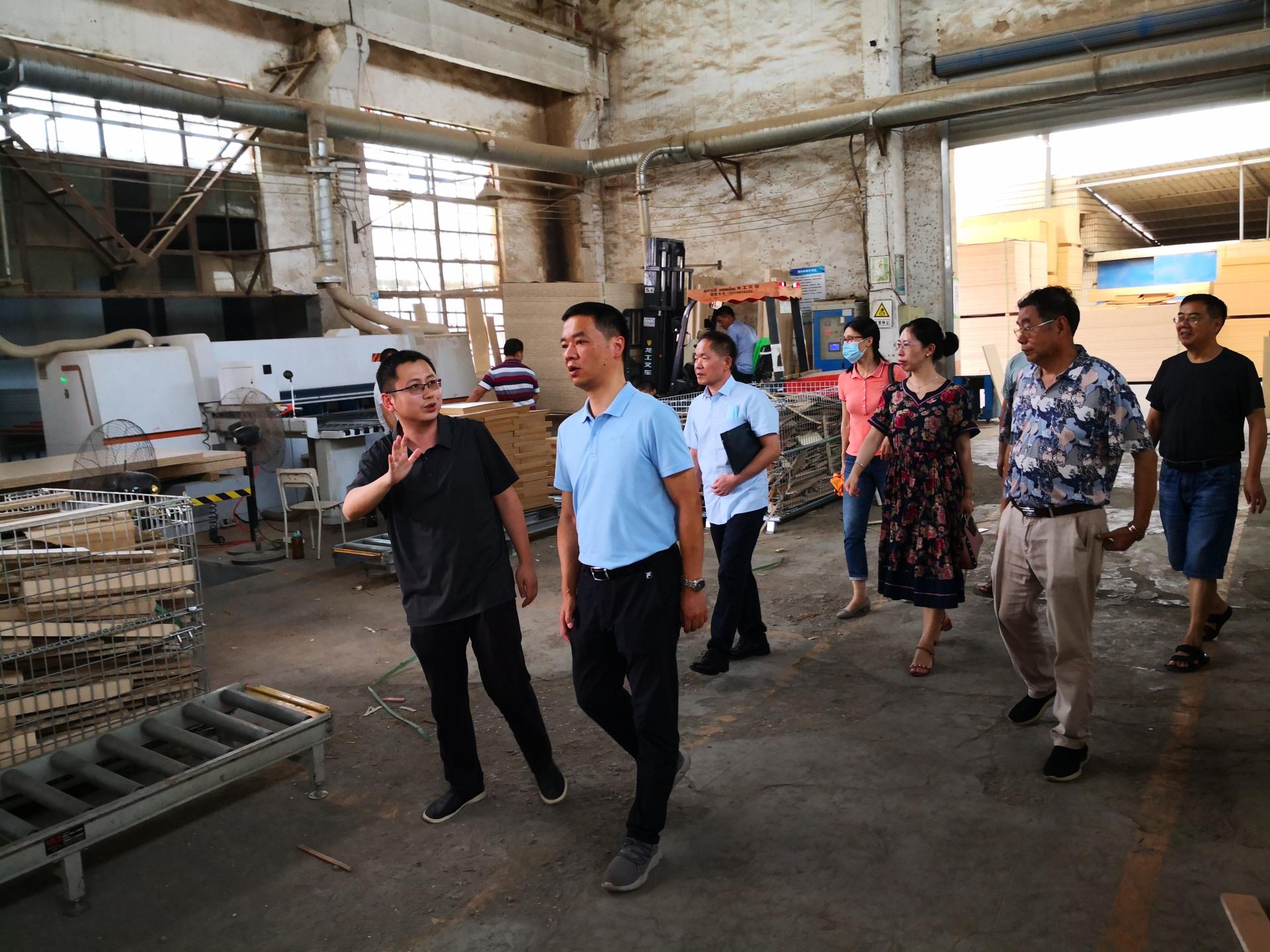 在车辆到达地点后,杨琦处长一行下车直奔生产车间,观看公寓家具板材切割、封边、定位打孔、钢材成型、防锈喷涂等各个环节的生产工艺流程,并查看成品及通风散味处理情况等。