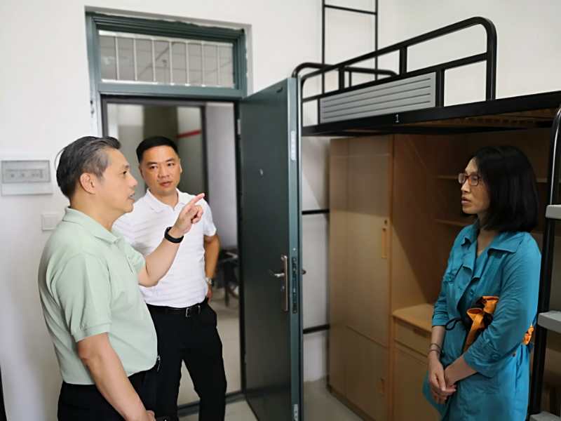 今年我校新购置的7336位学生公寓家具较往年在安全性能和人性化设计方面进行了提升,巩建鸣副校长边听取情况汇报,边逐层查看,对相关部门落实学校工作要求以及家具厂家生产和安装质量表示满意。