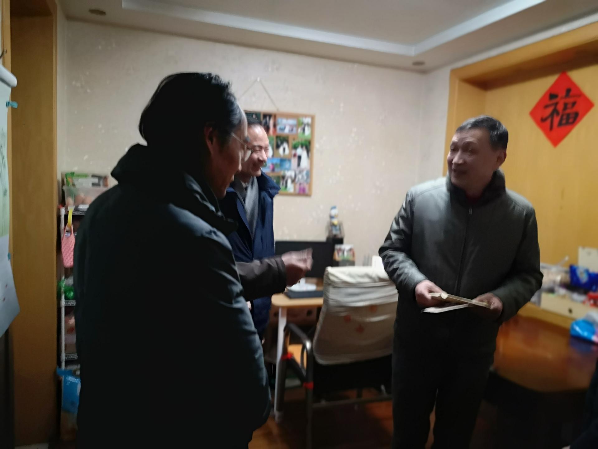 集团领导一行来到病休在家的季康、邱德龙、周家龙家里,代表集团党政领导及全体员工,向他们表示了亲切的慰问,送上了集团的慰问金,并详细了解了他们的病情和康复情况,鼓励他们树立信心,争取早日康复。韩长俊书记向他们转达了同事们的关怀和祝福,并提前祝他们度过一个温暖欢乐祥和的春节。